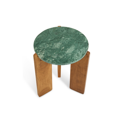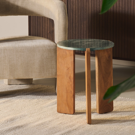 Bijzettafel Lilo - Walnoot Acacia & Groen Marmer